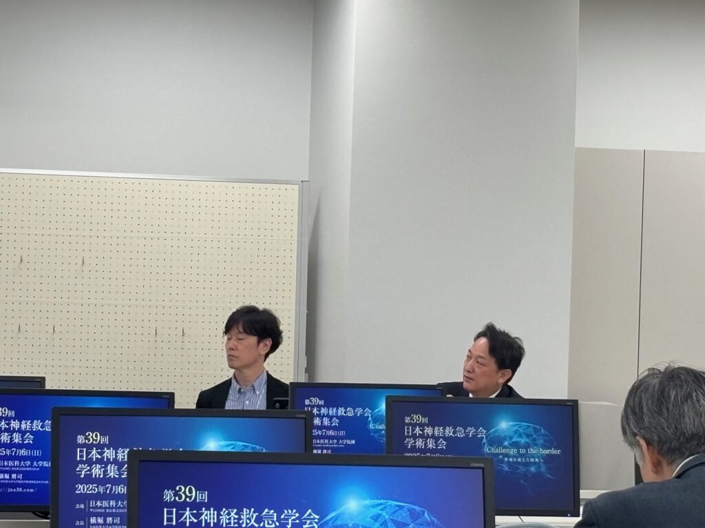 2025年7月6日に第39回日本神経救急学会学術大会が日本医科大学の大学院棟で行われました。当医局からはシンポジウム1演題、一般演題4演題を発表しました。救命科、脳神経内科、脳神経外科などが集い、神経系の救急疾患の症例を持ち寄り、活発な議論を行いました。