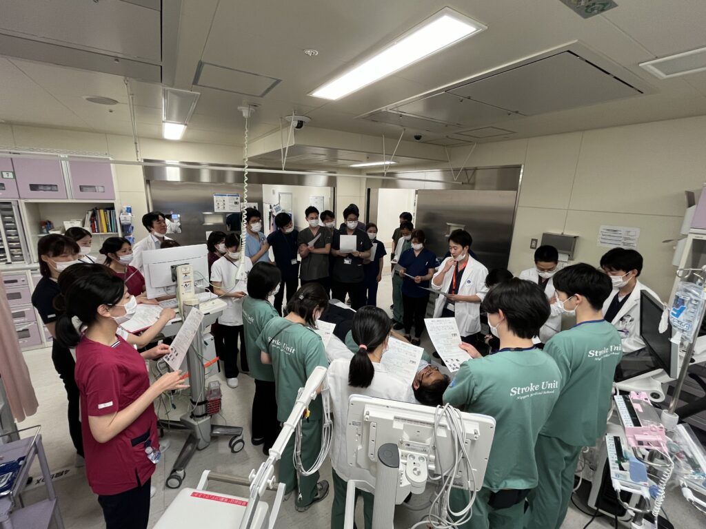 2026年4月7日、SU(脳卒中ケアユニット)看護師と当科医師が合同で、脳卒中救急診療に関するシミュレーション研修を実施しました。